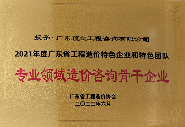 經(jīng)過4個月的單位、團(tuán)隊自主申報、專家評選,2022年6月27日公布評選結(jié)果,我司榮獲《2021年度廣東省工程造價特色企業(yè)和特色團(tuán)隊專業(yè)領(lǐng)域造價咨詢骨干企業(yè)》證書、《2021年度廣東省工程造價特色企業(yè)和特色團(tuán)隊品牌造價咨詢企業(yè)》證書。